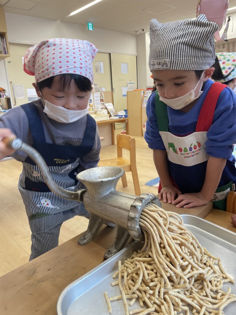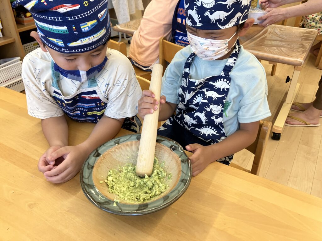 - 野菜の栽培、焼き芋、餅つき、味噌づくりや梅干しづくり、季節の野菜の皮むきやさやむきのお手伝いなど食の体験活動に力を入れています。